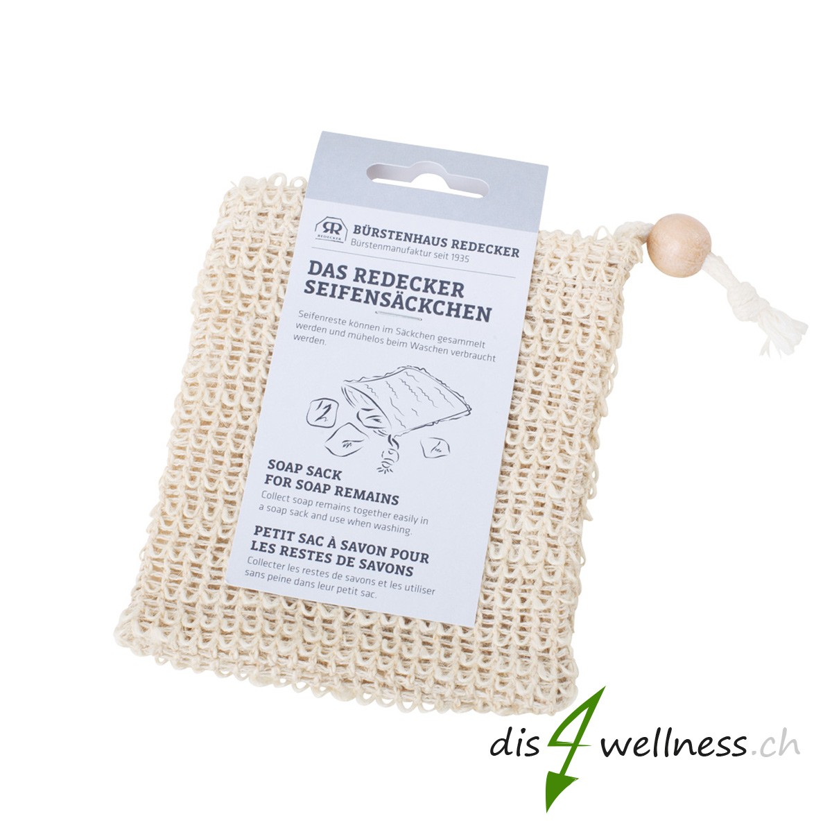 Sammeln Sie ganz einfach alle Seifenreste in diesem Säckchen zusammen und verbrauchen Sie die Reste bei Ihrer täglichen Körperhygiene. Die Sisal-Struktur massiert gleichzeitig die Haut und fördert die Durchblutung. Hergestellt aus Baumwolle und Sisal, mit praktischem Baumwollband zum verschliessen und aufhängen. Mit diesem Seifenbeutel verschwenden Sie keine Seife mehr und können diese bis ganz zum Schluss verwenden.